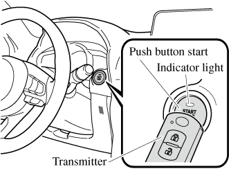 To start your mazda vehicle with the mazda advanced keyless entry and start system press the brake and the start button with the key fob in your pocket.